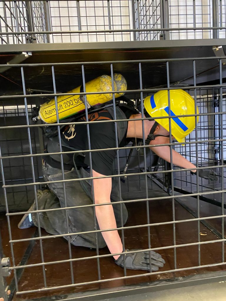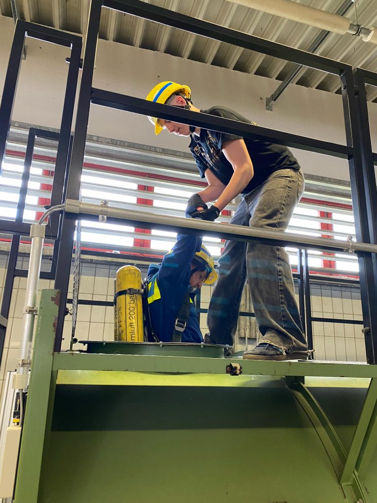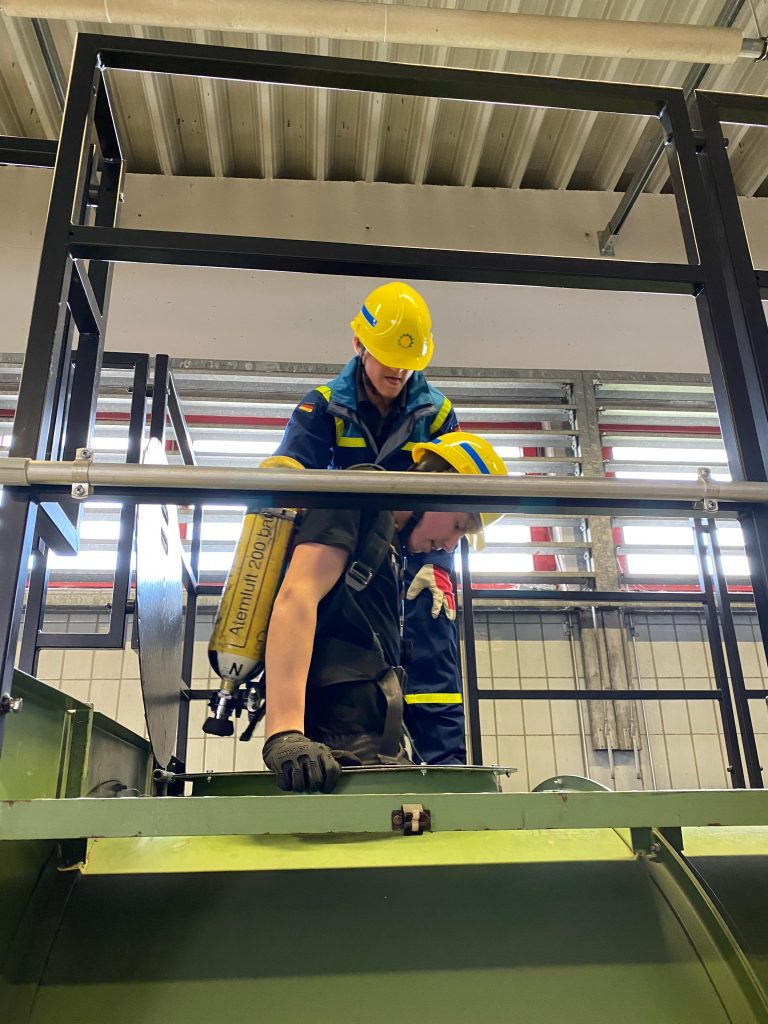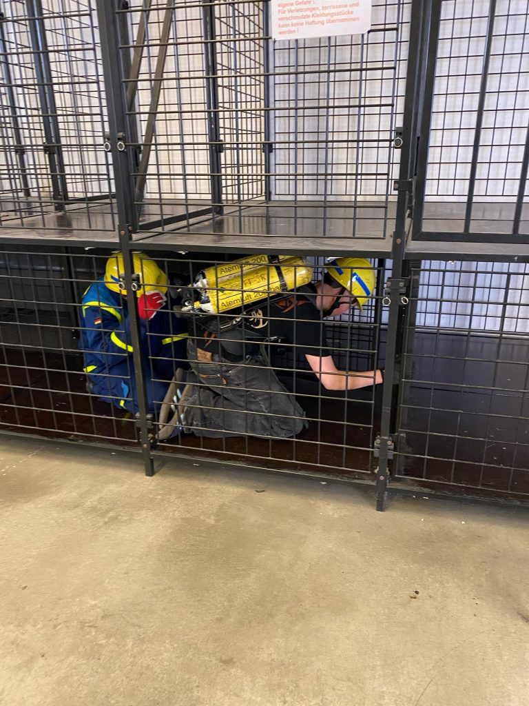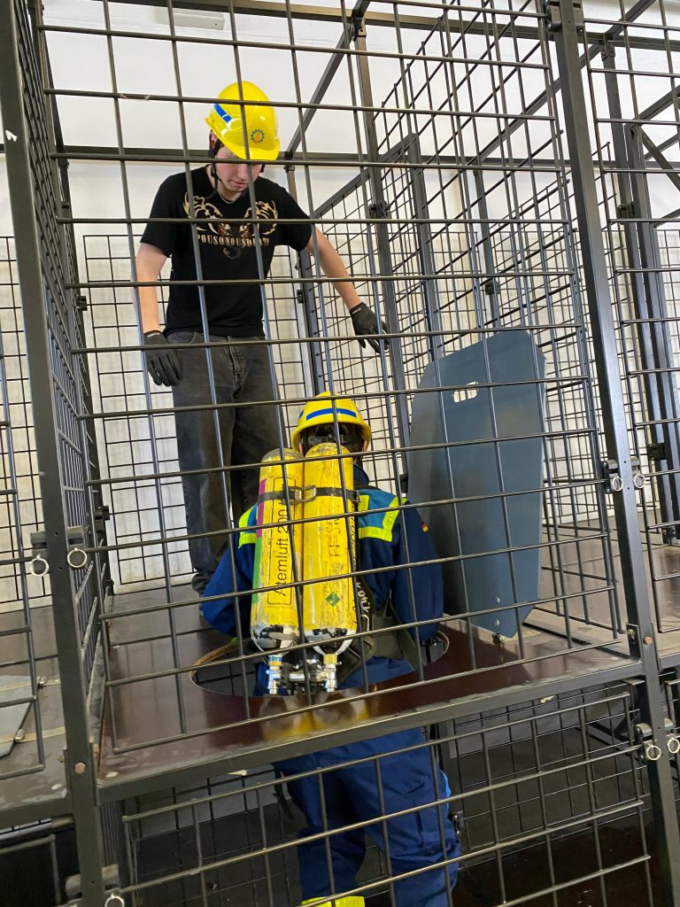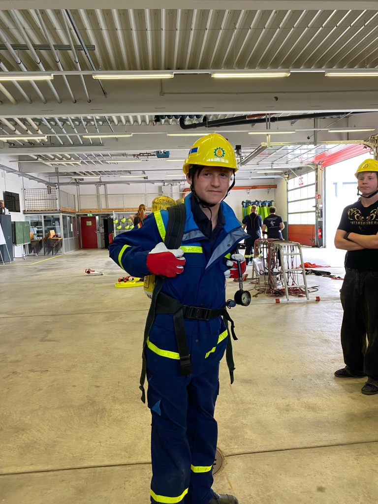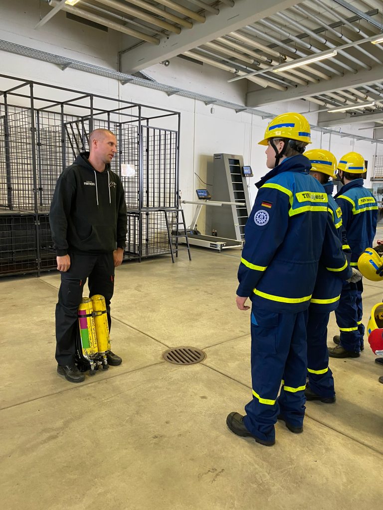 Nach einer freundlichen Begrüßung durch Florian Kiermeier, einem erfahrenen Feuerwehrmann und Fachbereichsleiter für Atemschutz und CSA, begann der Dienst mit einer theoretischen Einführung in das Thema Atemschutz. Anschließend durften die Jugendlichen selbst die Atemschutzstrecke erkunden – zunächst ohne Atemschutzgerät, um sich an die Umgebung zu gewöhnen. Besonders neugierig zeigten sich die Jugendlichen, als sie schließlich die Möglichkeit bekamen, ein echtes Atemschutzgerät anzulegen. Unter der fachkundigen Anleitung von Florian Kiermeier konnte jeder einmal ausprobieren, wie sich ein solches Gerät im Einsatz anfühlt. Der 2. Jugendsprecher ging dabei mit gutem Beispiel voran und zeigte großen Einsatz.