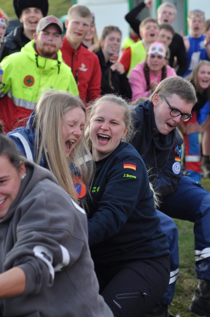 Ein besonderes Highlight war die Olympiade, bei der sich die Teilnehmenden in verschiedenen Teamspielen und Wettkämpfen untereinander messen und ihr Können unter Beweis stellen konnten. Auch ein Betreuer: innen-Wettkampf mit kreativen Challenges sowie das traditionelle Tauziehen zwischen den Jugendgruppen sorgten für Begeisterung und jede Menge Teamgeist. Die Teilnehmenden der THW-Jugend zeigten sich insbesondere von der moralischen Unterstützung der isländischen Kolleginnen und Kollegen überaus begeistert.